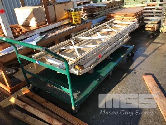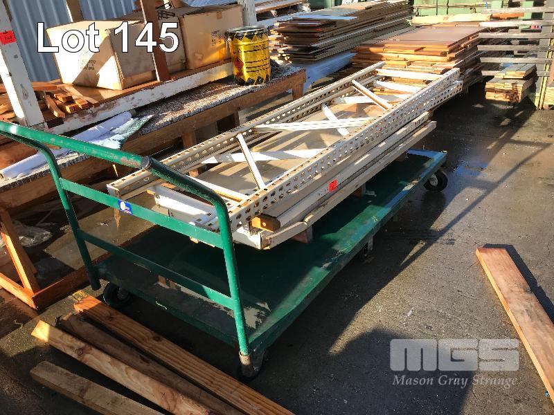 STEEL FLAT BED TROLLEY & SINGLE BAY OF STOCK SHELVING