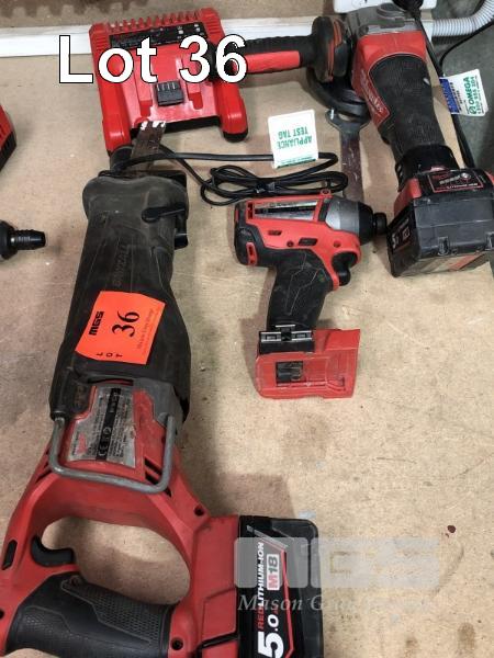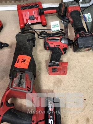 MILWAUKEE 18v HD RECIPRO SAW MODEL: M18CSX,MILWAUKEE TEKGUN, 125mm ANGLE GRINDER, 2 x 5ah BATTERIES, 1 x CHARGER