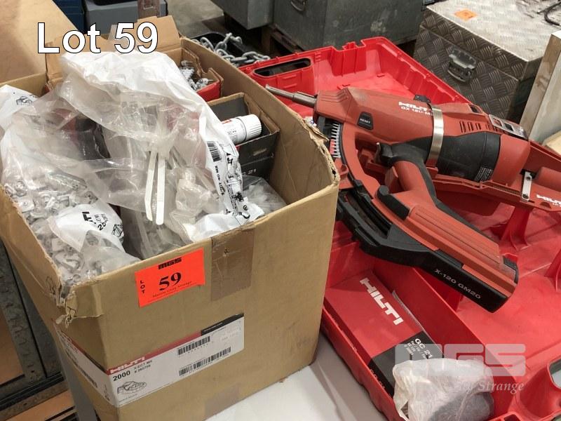 HILTI GX120 GAS POWERED ACTUATED NAIL GUN, INCASE, WITH CARTON OF HARDWARE PLUS 2 MTR EXTENSION HANDLE.