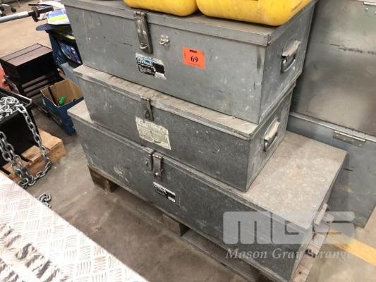 3 x GALV STEEL SITE BOXES, 1150 x 380 x 380mm, 760 x 330 x 260mm