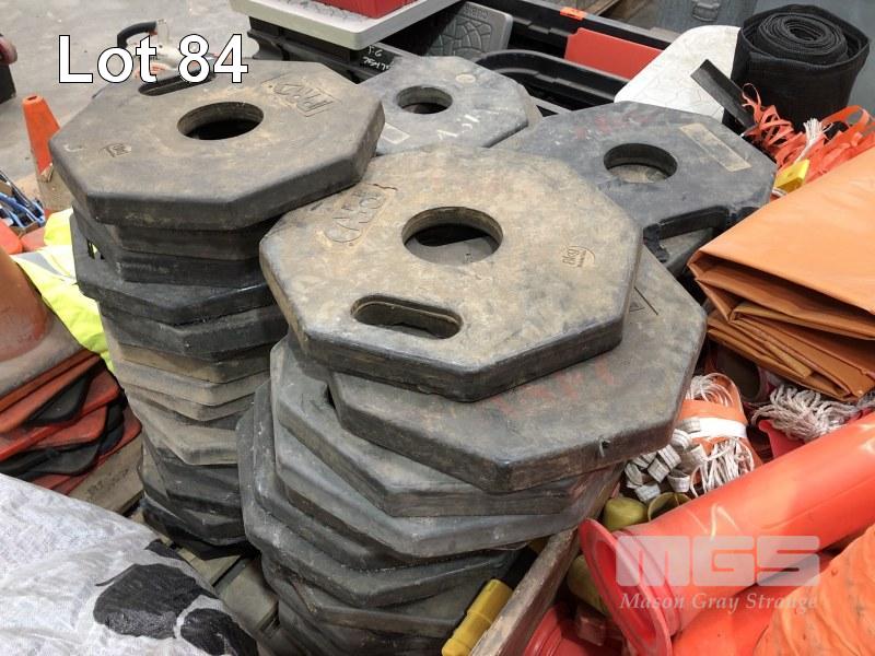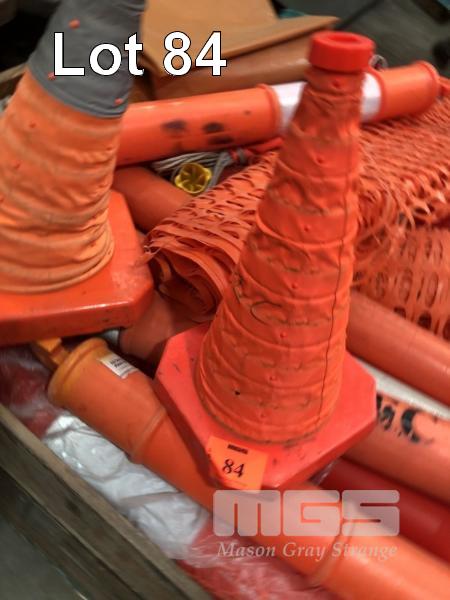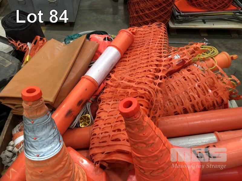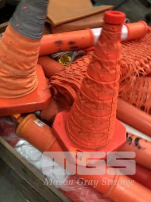 CONTENTS OF 3 x PALLETS, TRAFFIC CONES, PLASTIC BOLLARDS WITH BASES, RUBBER BOOTS, BUNTING ETC.