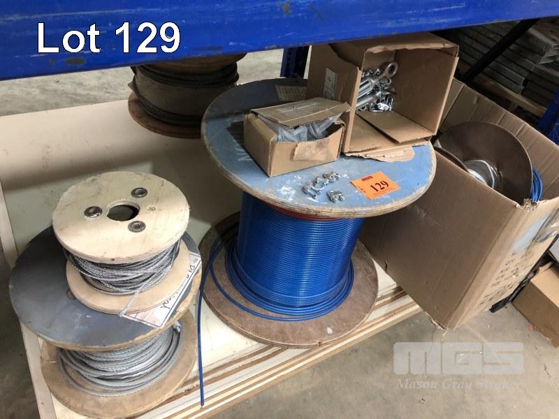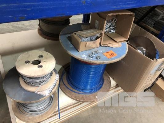 5 x PART ROLLS GALV & PVC COATED WIRE ROPE, CLAMPS & STRAINERS