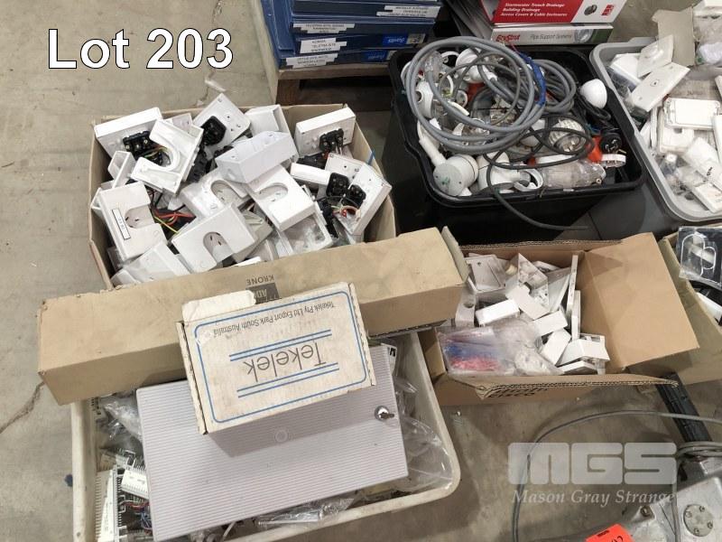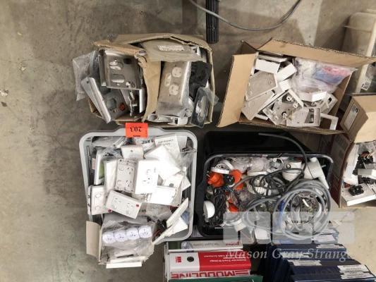 6 x CARTONS ASSORTED ELECTRICAL FITTINGS, PLUGS, GPO'S, SWITCHES, MOUNTING BLOCKS ETC.