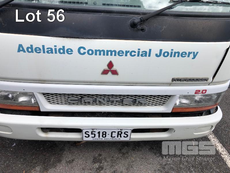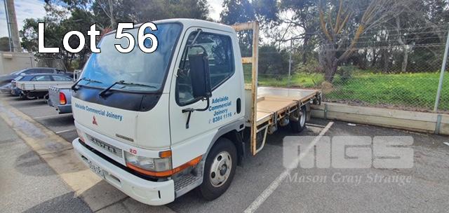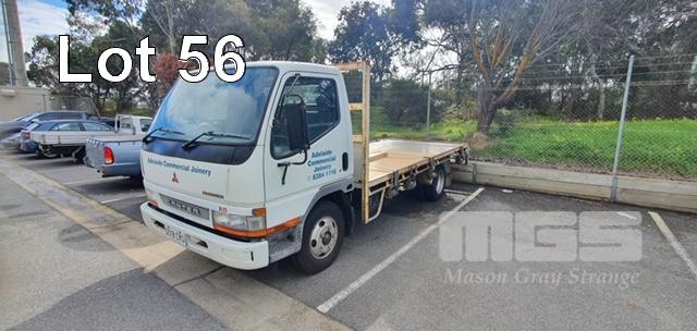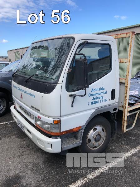 2003 MITSUBISHI L500/600 CANTER SINGLE SINGLE CAB FLATBED TRUCK REG: S518CRS (SA) VIN: JLFFE639E0KJ40144 ODO: 134806 GVM: 4495 5 SPEED MANUAL, DIESEL, WHITE DUCO, 2 DOORS, 3 SEAT, AIR CON, 4300 x 2100mm TRAY (WITH PAPERS, WITH 1 KEY/S, WITH OWNER'S MANUAL, NO SERVICE BOOKS)