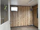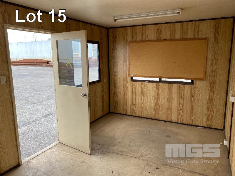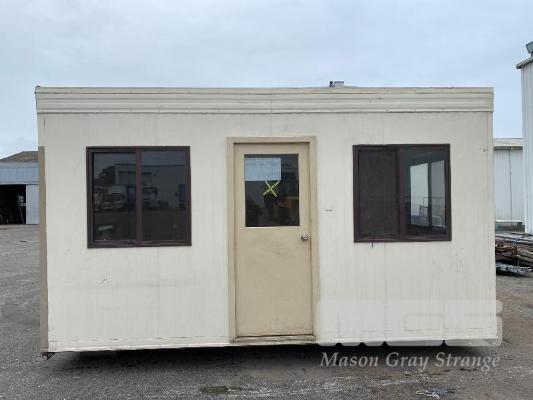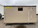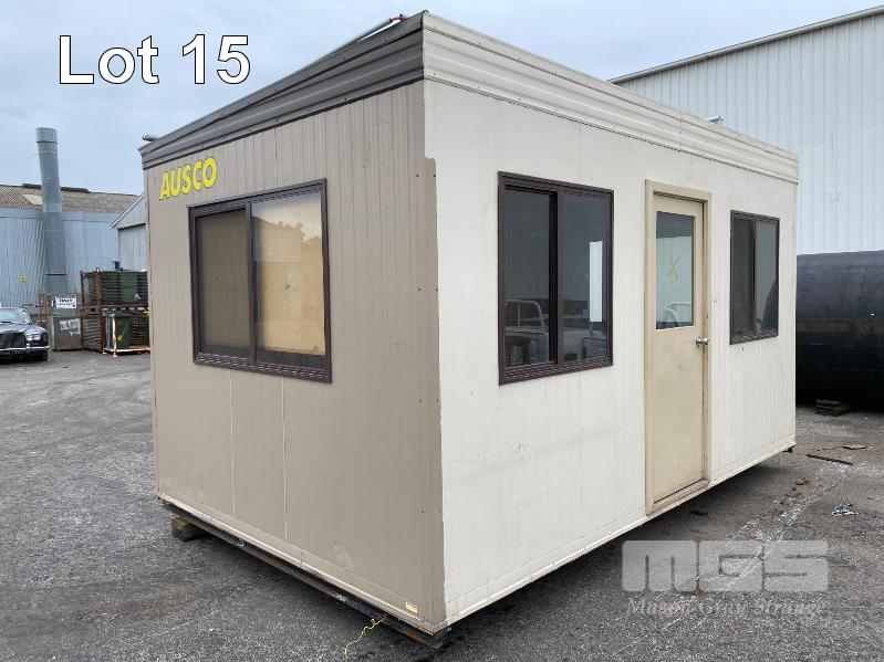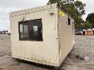 TRANSPORT BUILDING, AUSCO 4820 x 3010 x 2820mm (H) BROWN/CREAM COLOURBOND EXTERIOR, TIMBER PANEL INTERIOR SINGLE DOOR ENTRY 4 x SLIDING WINDOWS 240V POWER & LIGHTING STEEL SKID BASE, WATER TIGHT EXCEPT HOLE FOR THROUGH WALL A/C UNIT