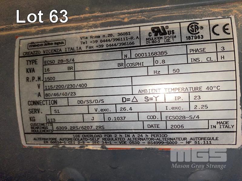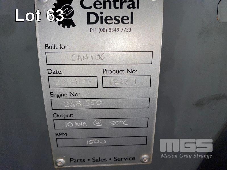 GENSET, 2006 CENTRAL DIESEL 10KVA @ 50 DEGREE CELSIUS POWERED BY DEUTZ, D910L02 TWIN CYLINDER DIESEL ENGINE HOURS: 36.23 SHOWING MECO ALTE SPA ALTERNATOR TYPE: ECSO 28-S/4 16KVA @ 1500RPM WITH DEEP SEA DIGITAL CONTROL INTERFACE MOD: 5210 3 PHASE, 415V, SKID MOUNTED