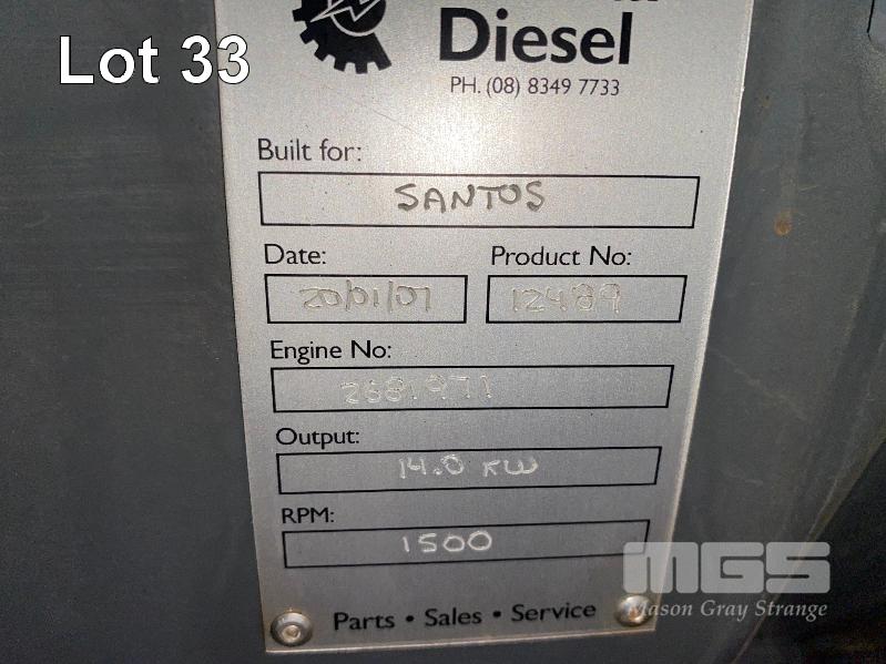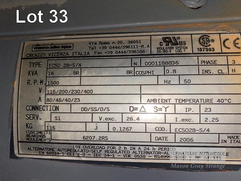 GENSET, 2007 CENTRAL DIESEL, 14kw POWERED BY DEUTZ, D910L02 TWIN CYLINDER DIESEL ENGINE HOURS: 88.59 SHOWING MECO ALTE SPA ALTERNATOR TYPE: ECSO 28-S/4 16KVA @ 1500RPM WITH DEEP SEA DIGITAL CONTROL INTERFACE MOD: 5210 3 PHASE, 415V, SKID MOUNTED