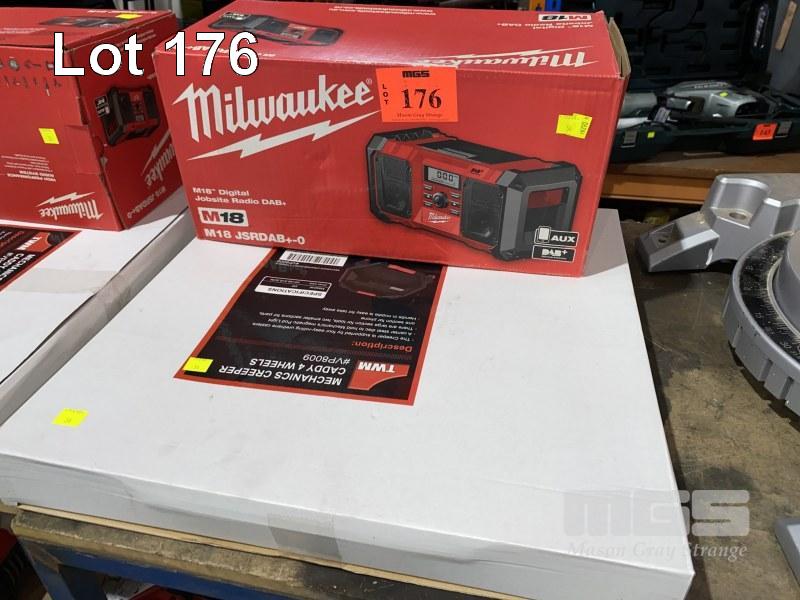 MILWAUKEE M18 DIGITAL RADIO CHARGING STATION (ALL FAULTS) & MECHANICS CREEPER CADDY