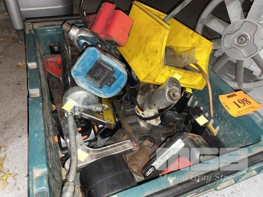 ASSORTED POWER TOOL BATTERIES, MAKITA DRIVER, AIR IMPACT GUN, GREASE GUN, DRIVER BITS, ETC, 1 x TUB