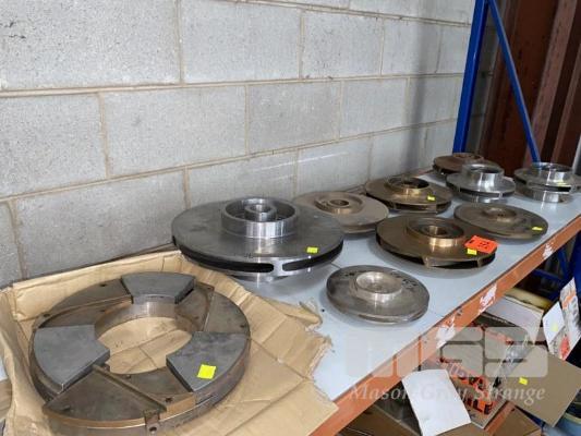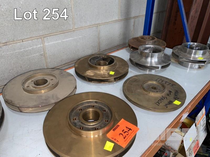9 x PUMP IMPELLERS, BRASS, STAINLESS STEEL, ETC