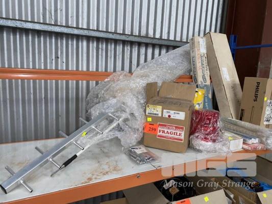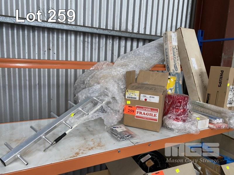 RED STROBE BEACON LIGHT, UHF ALLOY AERIAL, ASSORTED GLOBES, BATTENS, ETC