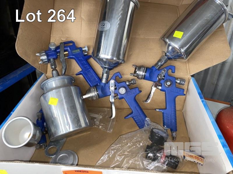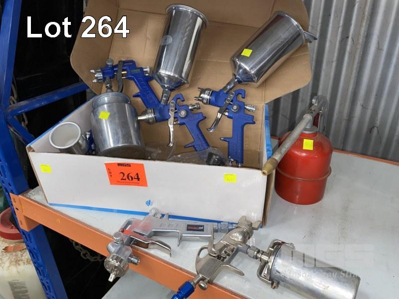 6 x SPRAY PAINT GUNS, GRAVITY & POT FEED, PROJECT AIR, ETC & KERO SPRAYER