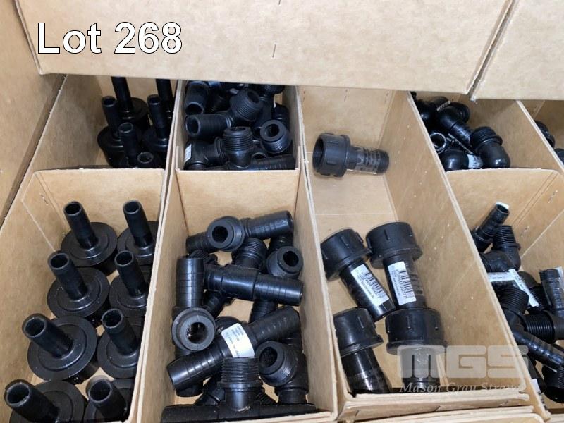 DIESEL/CHEMICAL RESISTANT PIPE FITTINGS, VULTREX, POLYPROPYLENE HOSE FITTINGS INCLUDING THREADED/BARBED JOINERS & CONNECTORS, ELBOWS, TEES, ETC SIZES INC: 15, 20, 25mm IN 20 x CARDBOARD DRAWERS 3 x TOP SHELVES