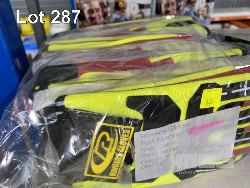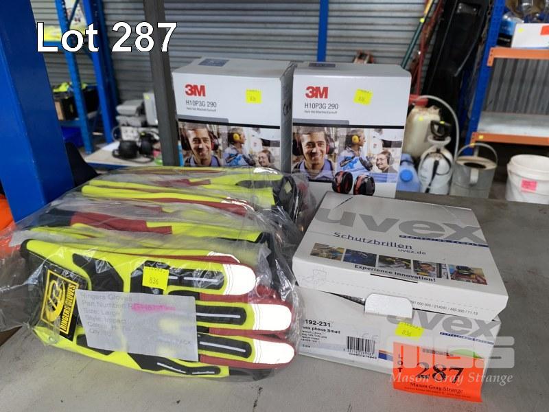 10 x PAIRS RIGGERS GLOVES, CR, R-14, SIZE LARGE, HI-VIS, ARMORED, 5 x PAIRS UVEX SAFETY GLASSES & 2 x PAIRS 3m PELTOR HARD HAT EAR MUFFS