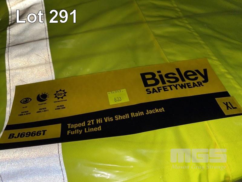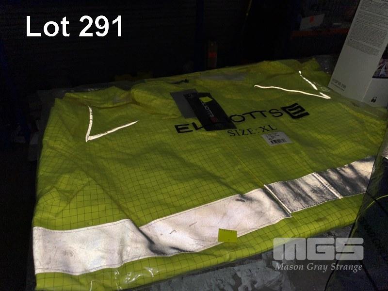BISLEY & ELLIOTTS HI-VIS RAIN COATS, YELLOW, XL WITH 16 x WORKIT HI-VIS YELLOW/BLUE WORK SHIRTS, SIZE 16, 5 x PAIR UVEX SAFETY GLASSES & 3m PELTOR HARD HAT EAR MUFFS