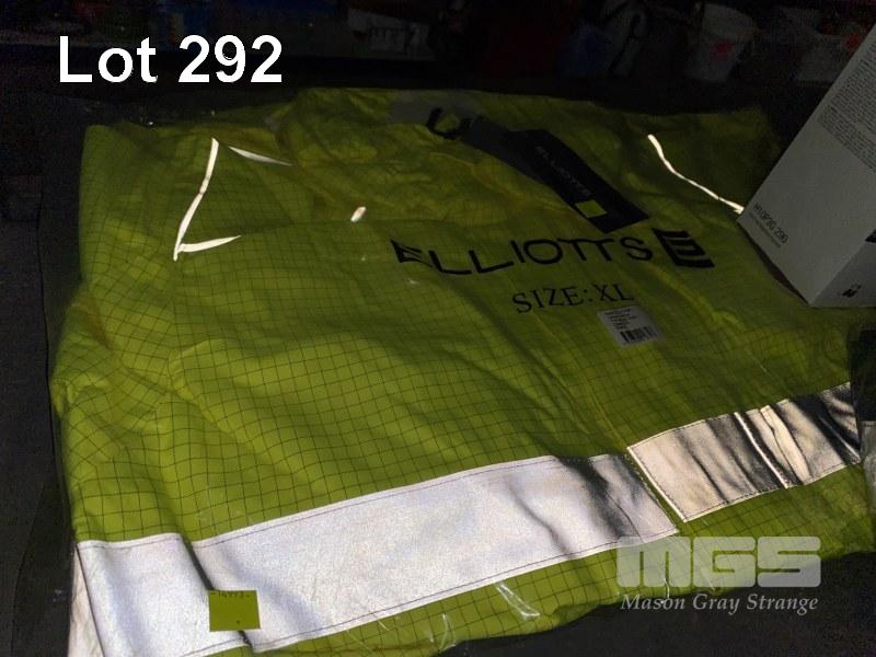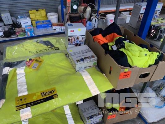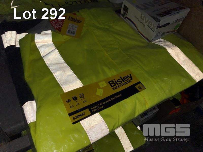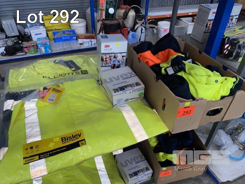 BISLEY & ELLIOTTS HI-VIS RAIN COATS, YELLOW, XL WITH 6 x JB HI-VIS WORK SHIRTS, SIZE XL, 5 x PAIR UVEX SAFETY GLASSES & 3m PELTOR HARD HAT EAR MUFFS