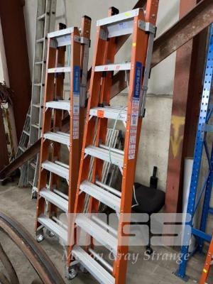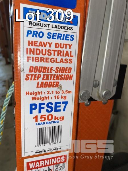 2 x DOUBLE SIDED STEP EXTENSION LADDRERS, FIBREGLASS, INDALEX PRO SERIES, 2.1-3.5m