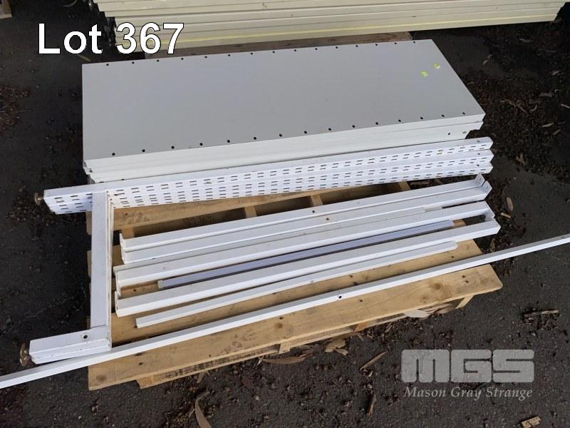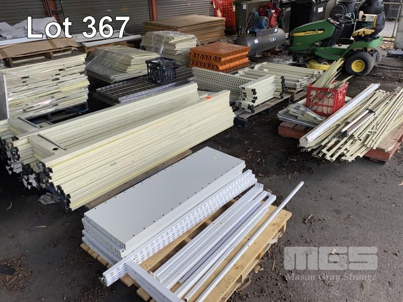 MODULAR STEEL SHELVING, ASSORTED SIZES, INC SUPPORTS, CROSSBEAMS, SHELVES & BACK PANELS,