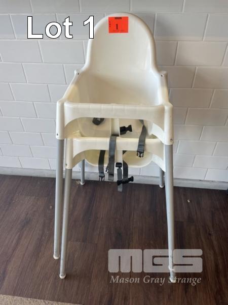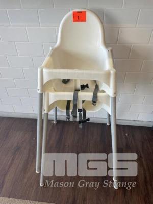 2 x CHILDRENS HIGH CHAIRS, WHITE PVC