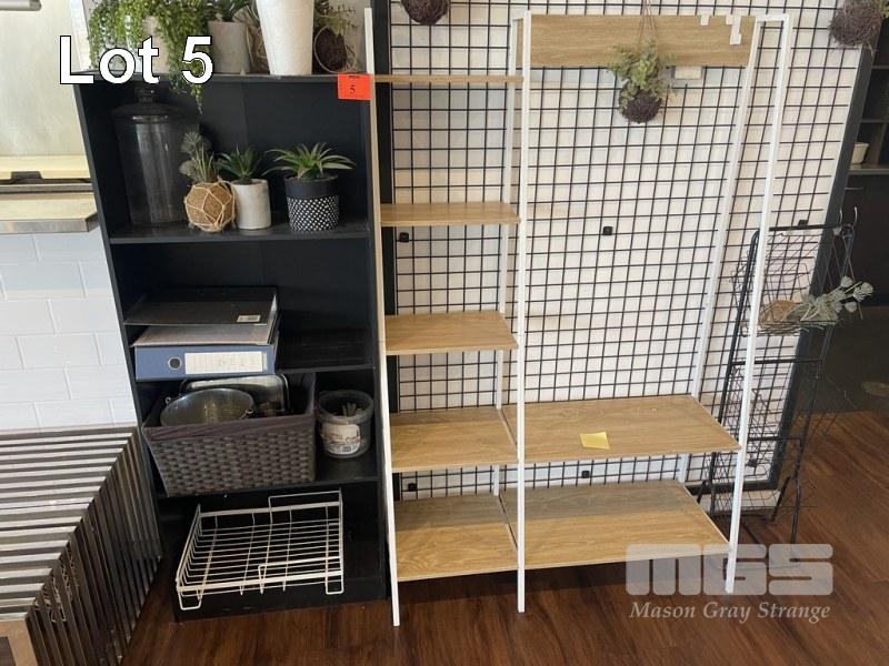 2 x SHELF UNITS, BASKET DISPLAY UNIT & IMITATION PLANTS