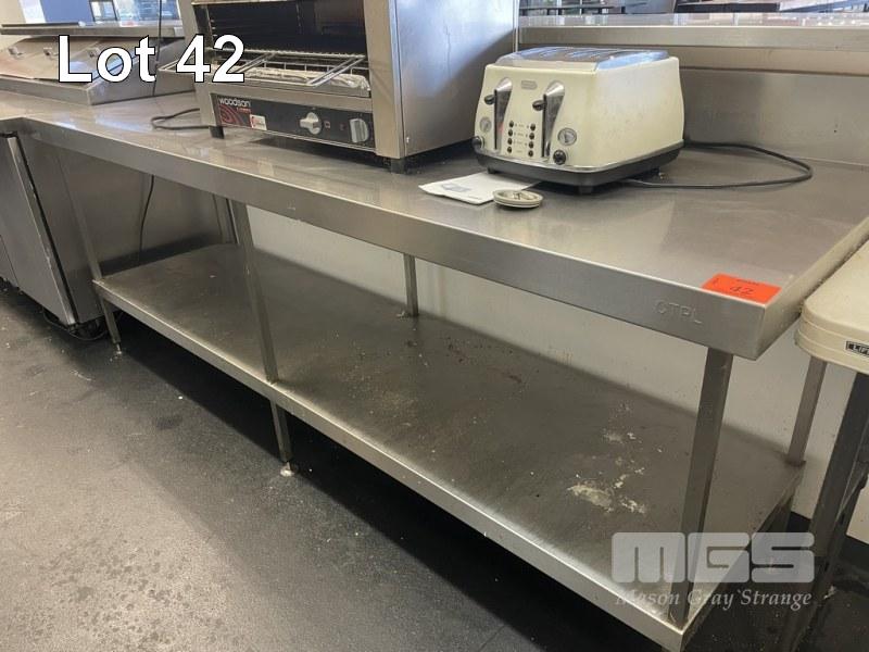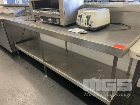STAINLESS STEEL PREP BENCH, 240 x 70cm, 2 TIER WITH SPLASHBACK