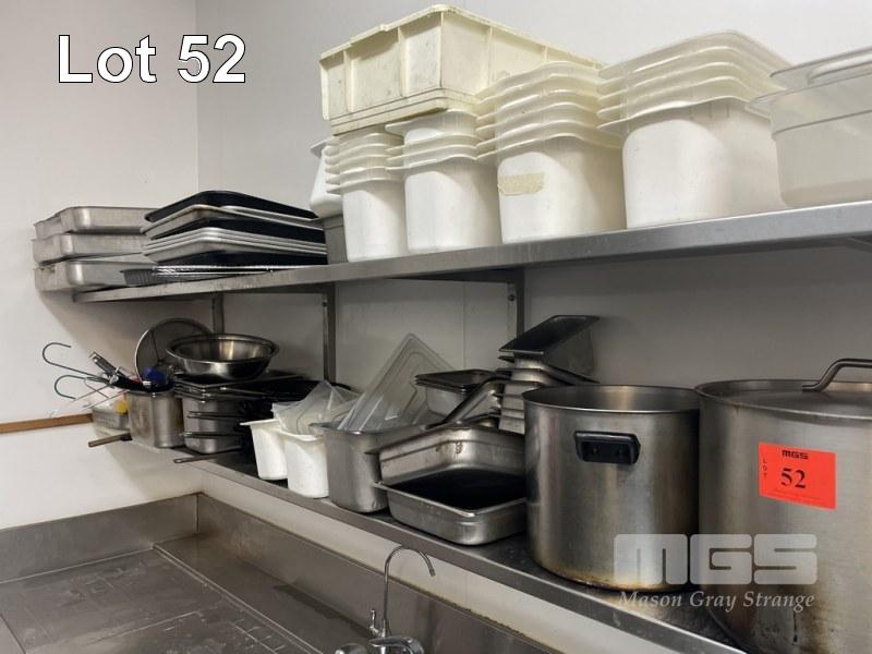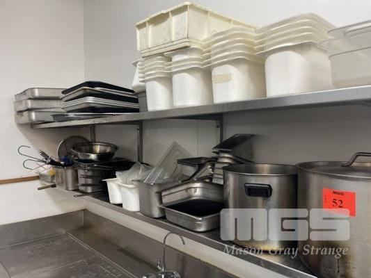 ASSORTED POTS, PANS, GASTRONORM TRAYS, UTENSILS, ETC