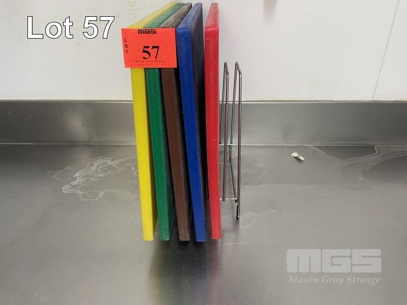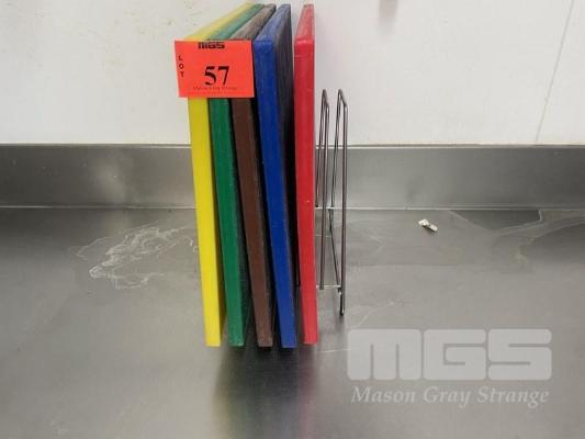5 x HEAVY DUTY PVC CUTTING BOARDS & RACK