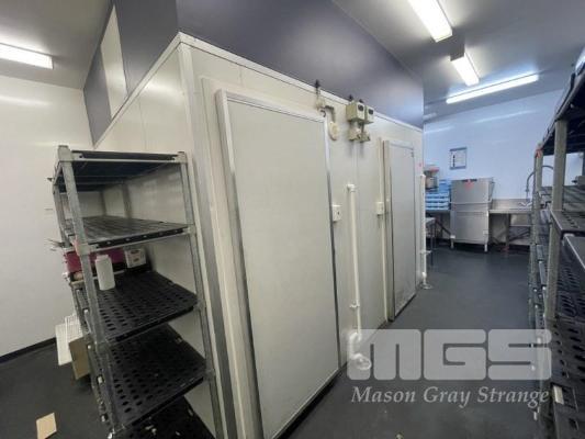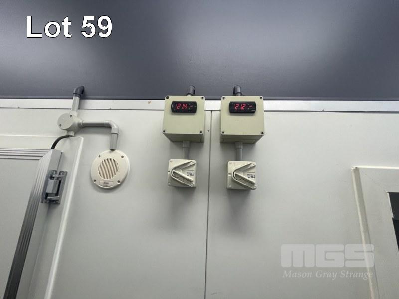 COMBINATION FREEZER/COOL ROOM COOL ROOM APPROX: 200 x 280 x 232cm (H) SINGLE DOOR ACCESS WITH BUFFALO TRIDENT PS SERIES TWIN FAN EVAPORATOR MOD: PS1M050 FREEZER ROOM: 150 x 280 x 2332cm (H) WITH RAISED FLOOR, SINGLE DOOR ACCESS BUFFALO TRIDENT PS SERIES TWIN FAN EVAPORATOR MOD: PS1LE033 BOTH WITH DIGITAL TEMP DISPLAYS (EXCLUDES RACKS) (ROOF MOUNT COMPRESSOR)