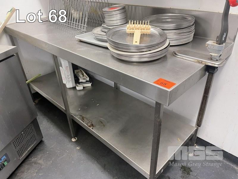STAINLESS STEEL PREP BENCH, 180 x 70cm WITH BONZER CAN OPENER, 2 TIER WITH SPLASHBACK