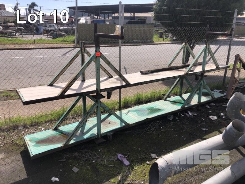 PAIR OF STACKABLE STEEL STOCK TROLLEYS, 4000 x 400mm, CASTOR WHEELS