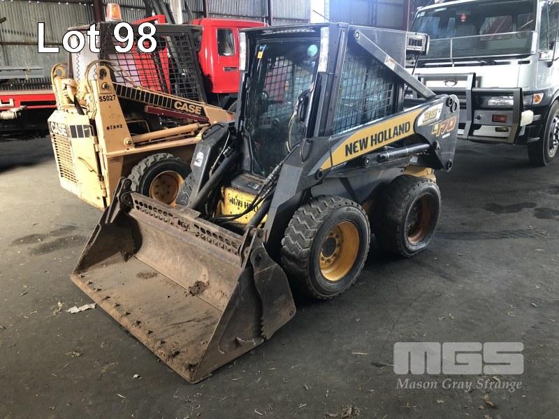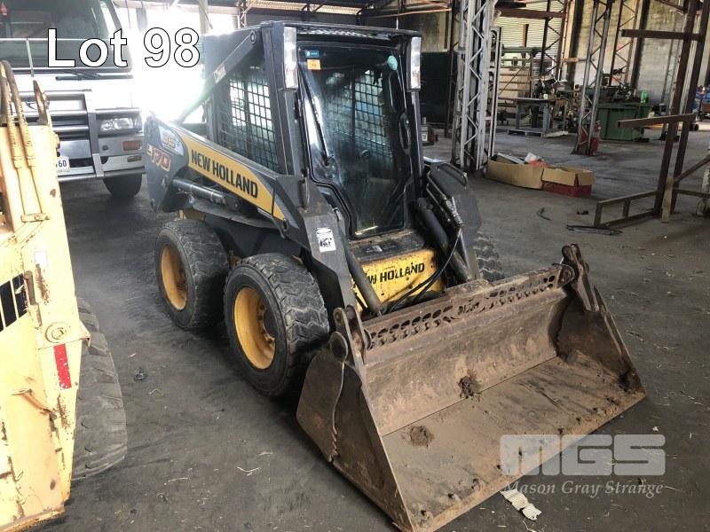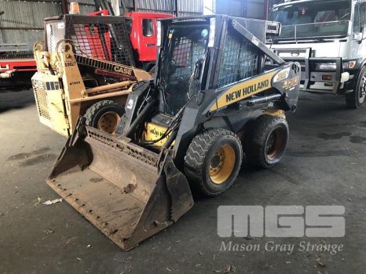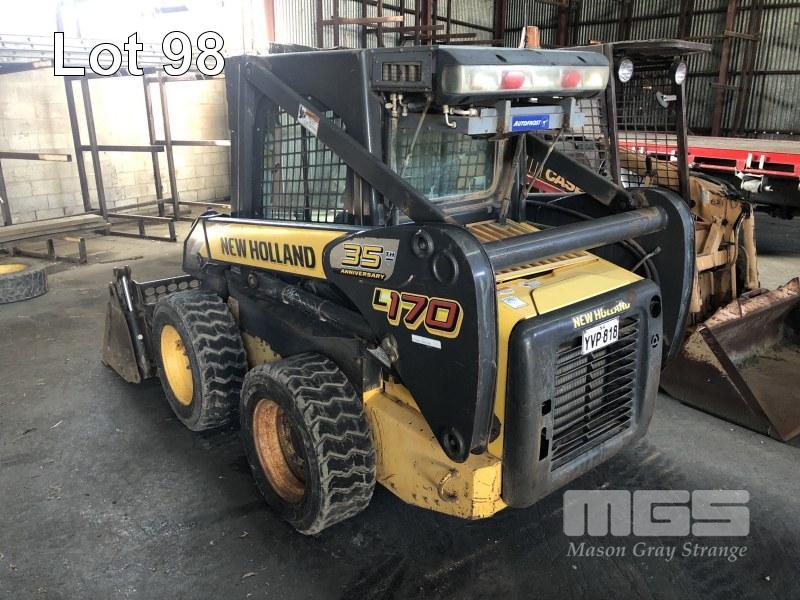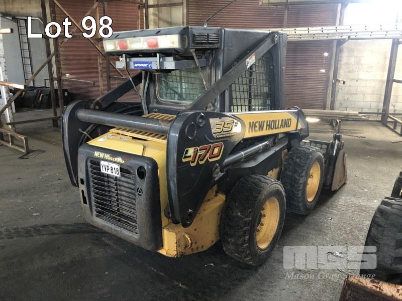 NEW HOLLAND SKID STEER, MODEL: L170, AIR CONDITIONED CAB, 4-1 BUCKET, 3,757hrs