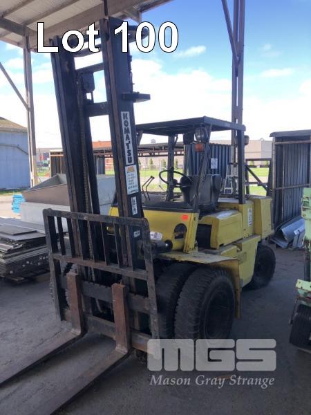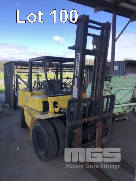 KOMATSU FORKLIFT, MODEL: FG-40-4, CAP: 3,400kg, SERIAL: 130023, MAST HEIGHT: 4.5m, SERVICE WEIGHT, 5,945kg, 9,788hrs, SEE THROUGH 2 STAGE MAST, HEADLIGHTS, DUAL FRONT WHEELS, LPG