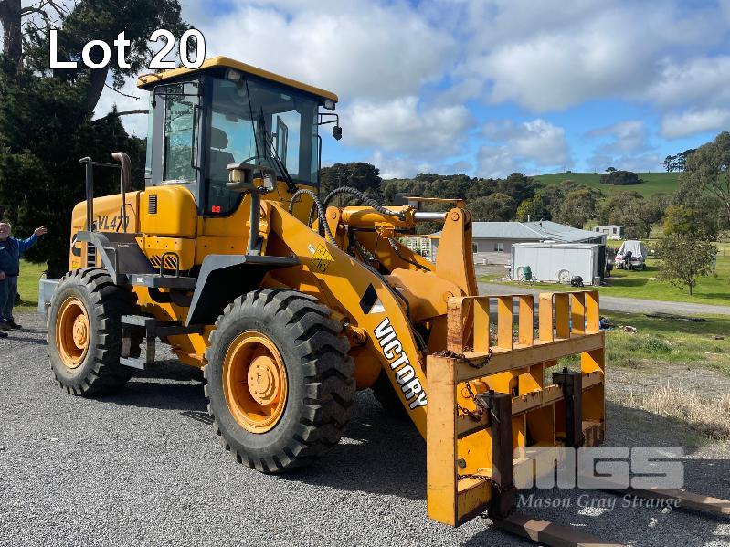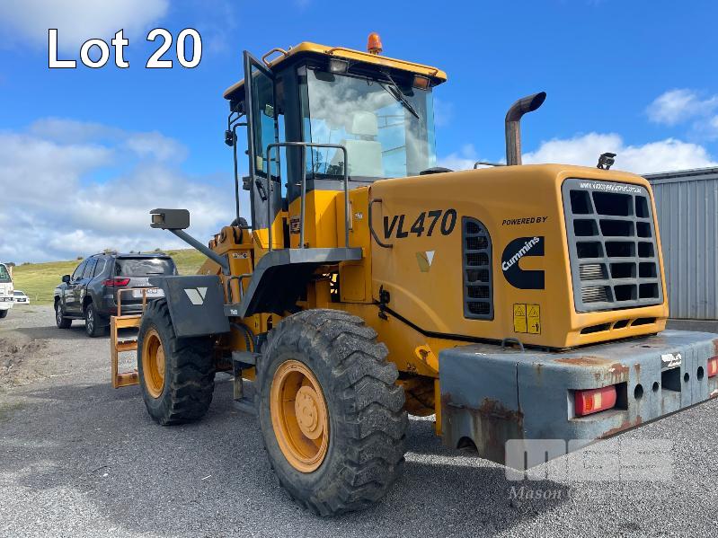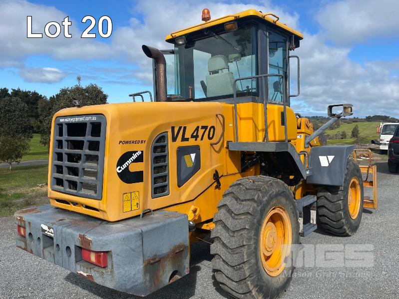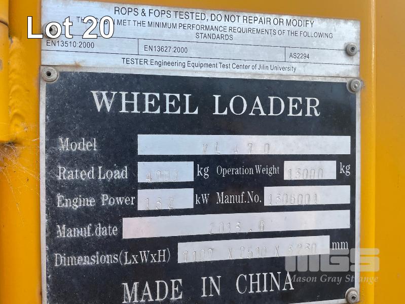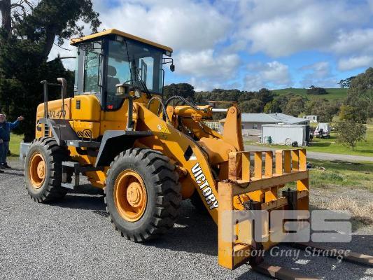 VICTORY WHEEL LOADER, MODEL: VL470, ARTICULATED, ROPS AIR CONDITIONED CABIN, POWERED BY CUMMINS TURBO DIESEL, POWER SHIFT AUTO, WITH GP BUCKET, & FORK TINES, DOM: 2013, 132kw, ID: 1306001, 480hrs, 4000kg RATED