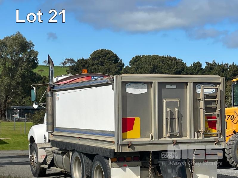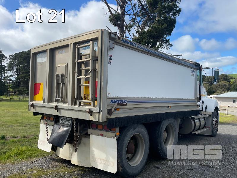 KENWORTH TIPPER 6 x 4 TRUCK, MODEL: T350, DOM: 2005, REGO: 5B08MB, VIN: 6F50000005A429224, 955,774km, GVM: 24,100kg, CUMMINS ISM TURBO DIESEL, 18 SPEED, FITTED WITH HERCULES ALLOY TIPPER BODY, WITH GRAIN SHOOT, RING FEEDER, & ALLOY WHEELS
