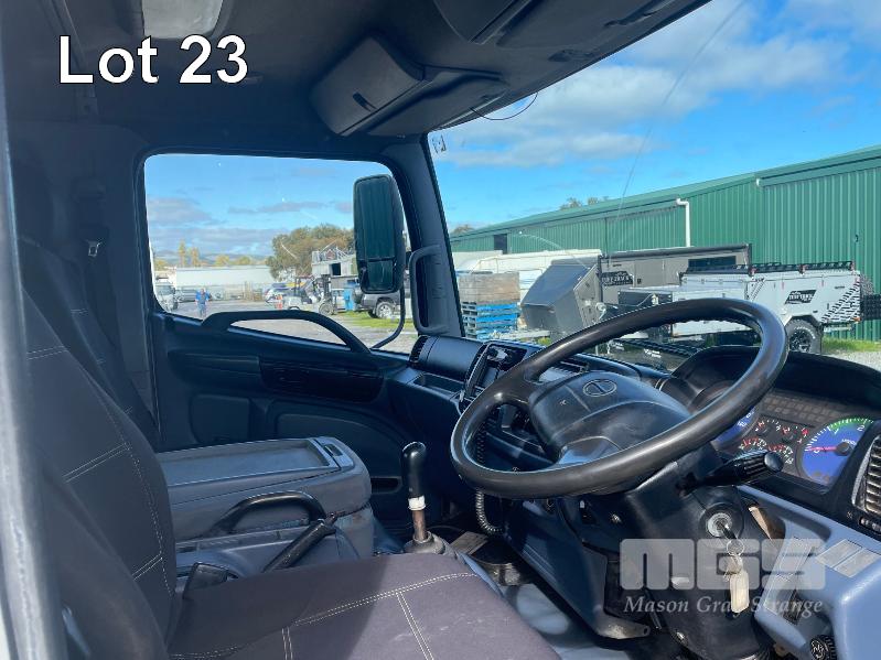 HINO TRAY TOP TRUCK 4 x 2, MODEL: FD1J, DOM: 2006, REGO: SB79DG, VIN: JHDFD1JPXXX10977, 831,550km, LONG WHEEL BASE, AIR ASSISTED BRAKES, 6 x 2.4m TRAY, UNDER MOUNT TOOL BOXES, REAR MOUNT CRANE, CAP: UNKNOWN, HYDRAULIC DRIVE, NOTE: MINOR DOOR DAMAGE PASSENGER SIDE