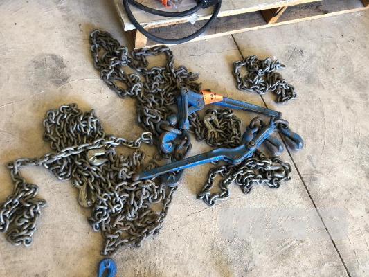 2 x CHAIN DOGS, 6 TONNE, 10mm, 6 x ASSORTED SHORT CHAINS, & SHORTENERS