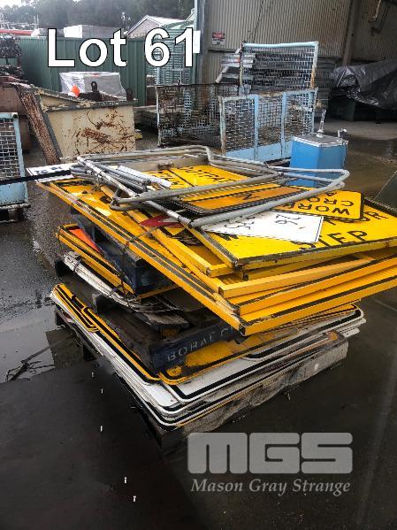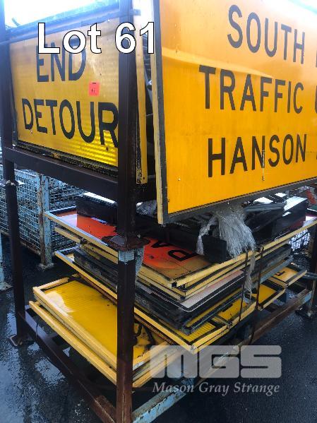 CONTENTS OF 2 x STILLAGES, ROAD SIGNS, & STANDS