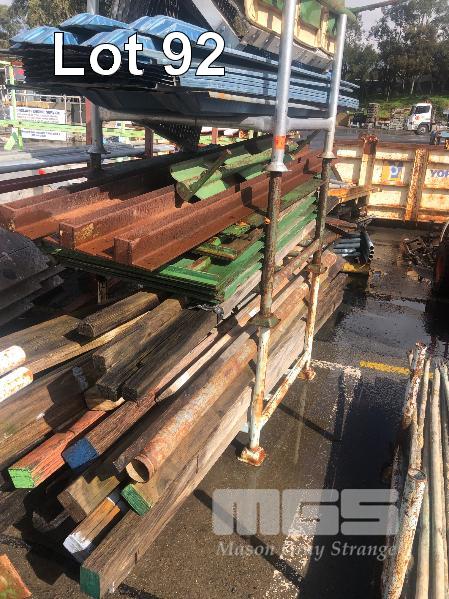 3 x STILLAGES ASSORTED TIMBERS, STEEL SECTIONS ETC.