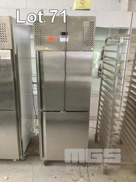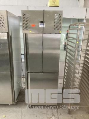 UPRIGHT SPLIT DOOR CHEFS FRIDGE, FED SN500TNM STAINLESS STEEL CASED SELF CONTAINED UNIT, 240V