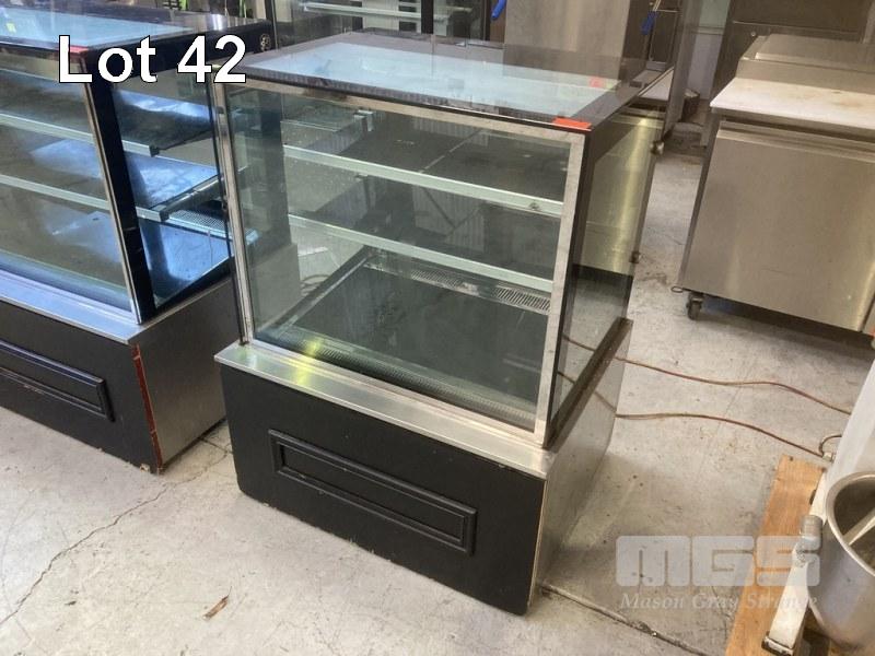 CAKE DISPLAY, SQUARE GLASS, 90cm, 240V (NOTE: SOME CHIPS) NO BACK COVER PLATE