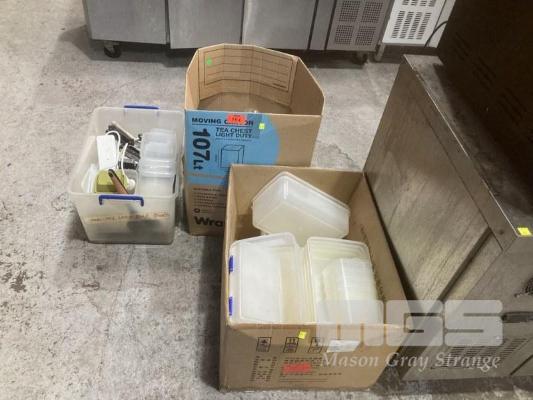 PLASTIC CONTAINERS & JARS, KITCHEN UTENSILS, ETC