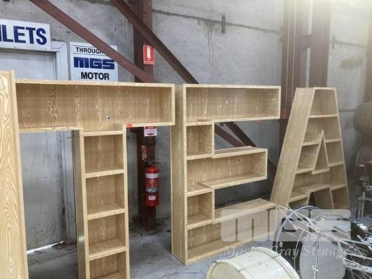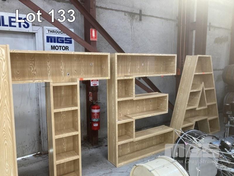 3 x LETTER SHAPE BOOKCASES, LETTERS, T, E, & A, 200mm (H), BEECH TIMBER