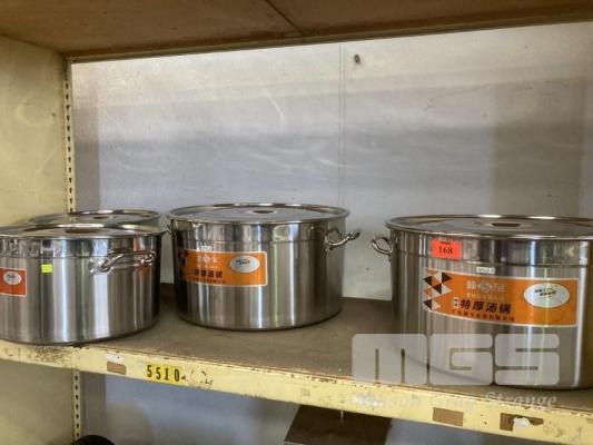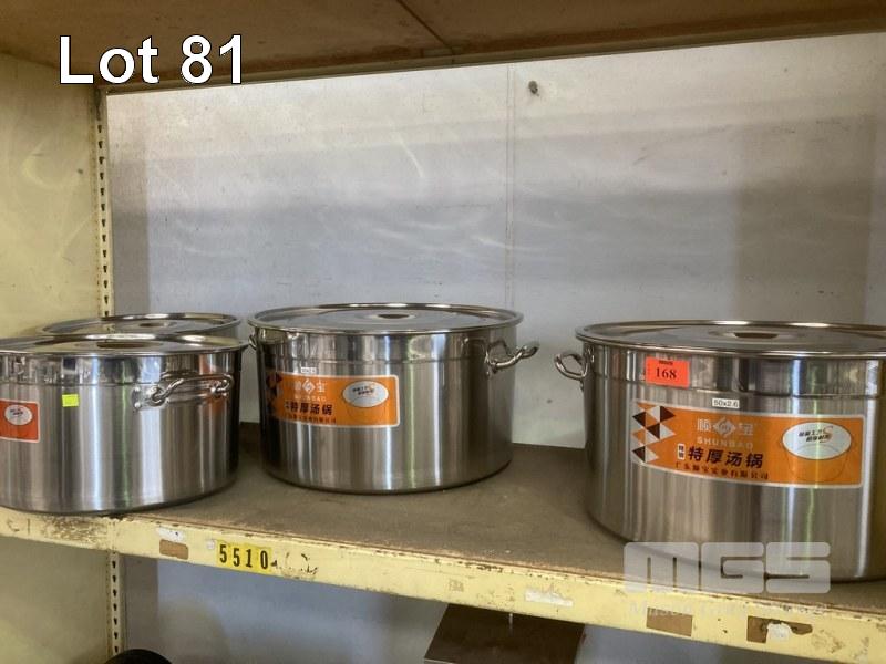 4 x STAINLESS STEEL STOCK POTS, 40 & 50cm