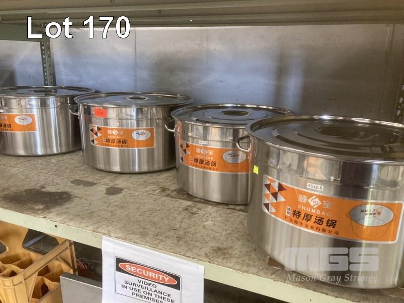 4 x STAINLESS STEEL STOCK POTS, 45 & 50cm