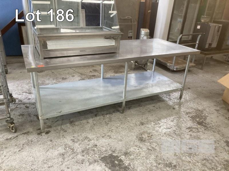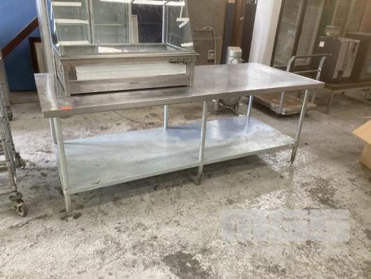 STAINLESS STEEL TOP PREP BENCH, 244 x 102cm, 2 TIER