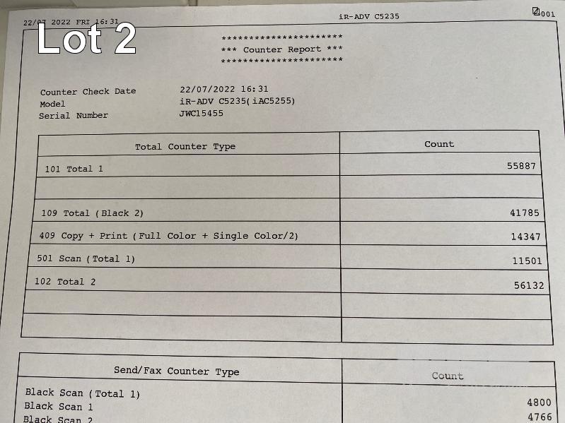 PHOTOCOPIER, CANON imageRUNNER ADVANCE C5235 COLOUR, ADF, PRINTER USB & NETWORK PORTS, 14,347 COLOUR & 41,786 B&W COPIES SHOWING (TEST PAGE ATTACHED) S/N:JWC15455