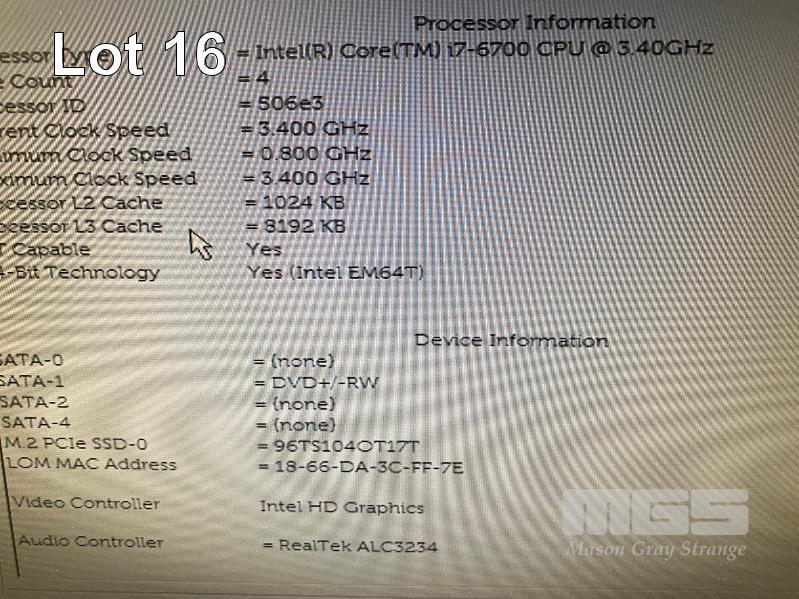 DESKTOP PC, DELL OPTIPLEX 7040 SFF, CORE i7 6700 (6TH GEN) @ 3.4GHz, 16GB DDR4 RAM, 256GB NVMe M.2 SSD, DVD-RW, INTEL HD VIDEO, 10 x USB, WINDOWS 10 HOME INSTALLED (NO KEYBOARD, NO MOUSE) S/N:81G1LG2