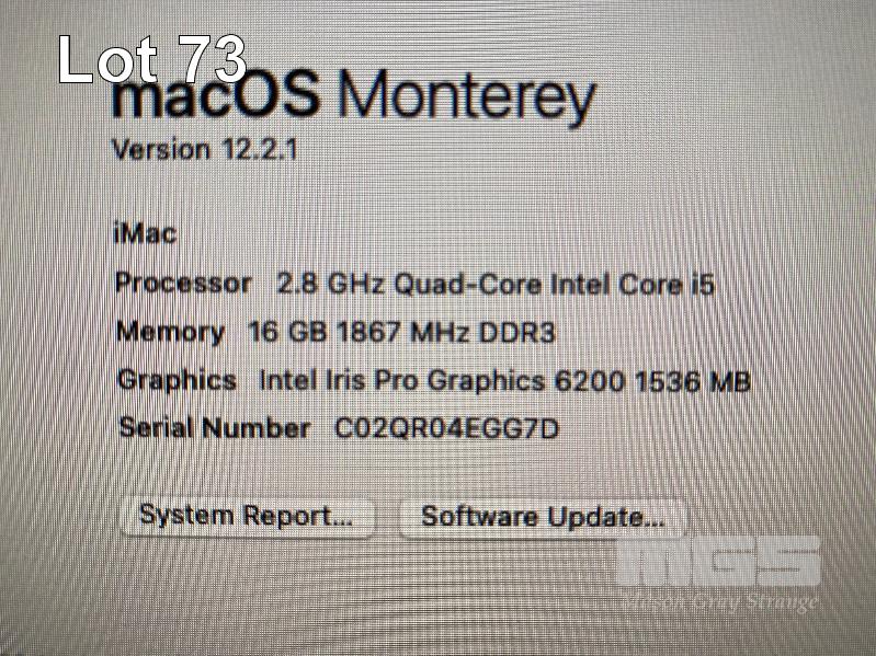 APPLE iMAC (A1418), CORE i5 5575R (5TH GEN) @ 2.8GHz, 16GB DDR3 RAM, 256GB SSD, BUILT-IN 21.5" DISPLAY (1920x1080), INTEL IRIS PRO GRAPHICS 6200, Wi-Fi, MAC OS 12 INSTALLED (NO KEYBOARD, NO MOUSE, NO CABLE) S/N:C02QR04EGG7D
