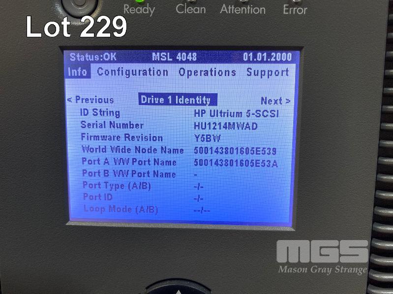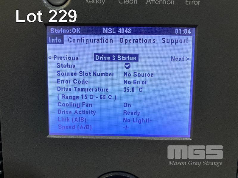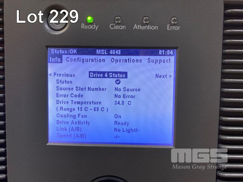 RACKMOUNT TAPE LIBRARY, HP STORAGEWORKS MSL4048, BL543AR, 4 x LTO5 FIBRE CHANNEL TAPE DRIVES, AQ293B#103, 2 x PSU (NO CABLES) S/N:MXA219Z057