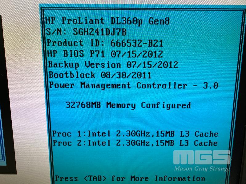 RACKMOUNT SERVER, HP PROLIANT DL360p Gen8, 1U, 2 x XEON E5-2630 @ 2.3GHz, 32GB ECC DDR3 RAM, 8 x 146GB SAS HDD, 2 x PSU (NO CABLES) S/N:SGH241DJ7B
